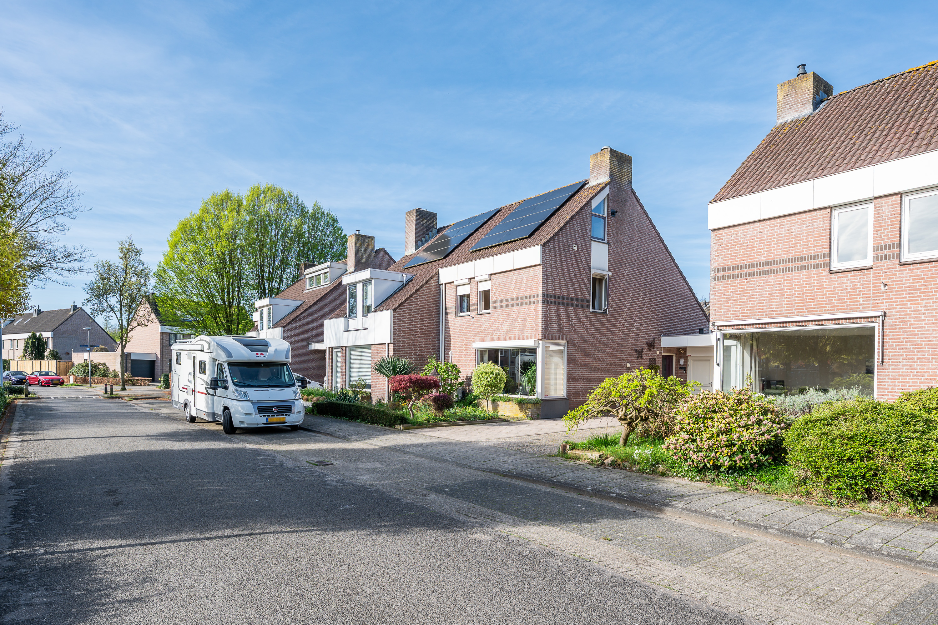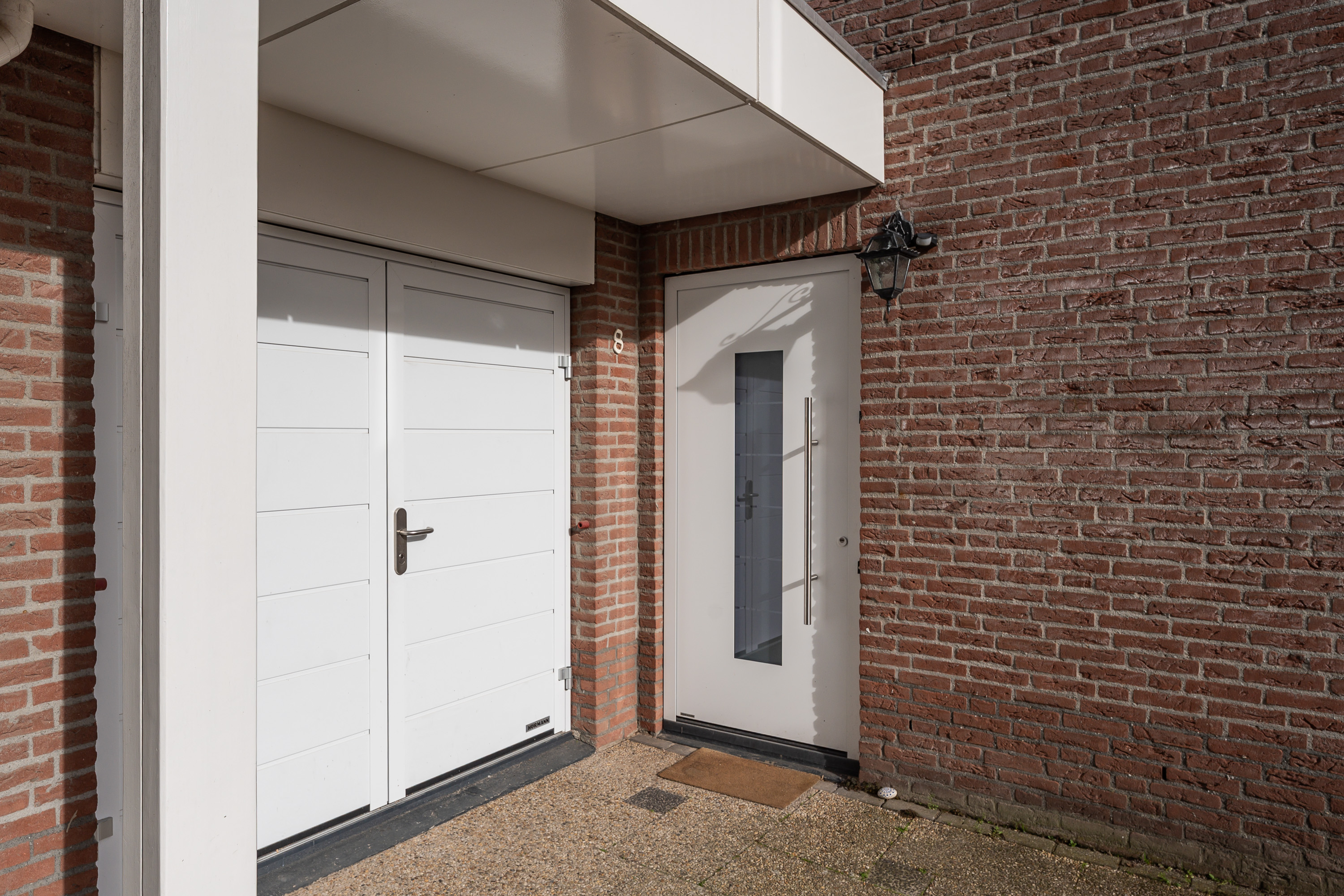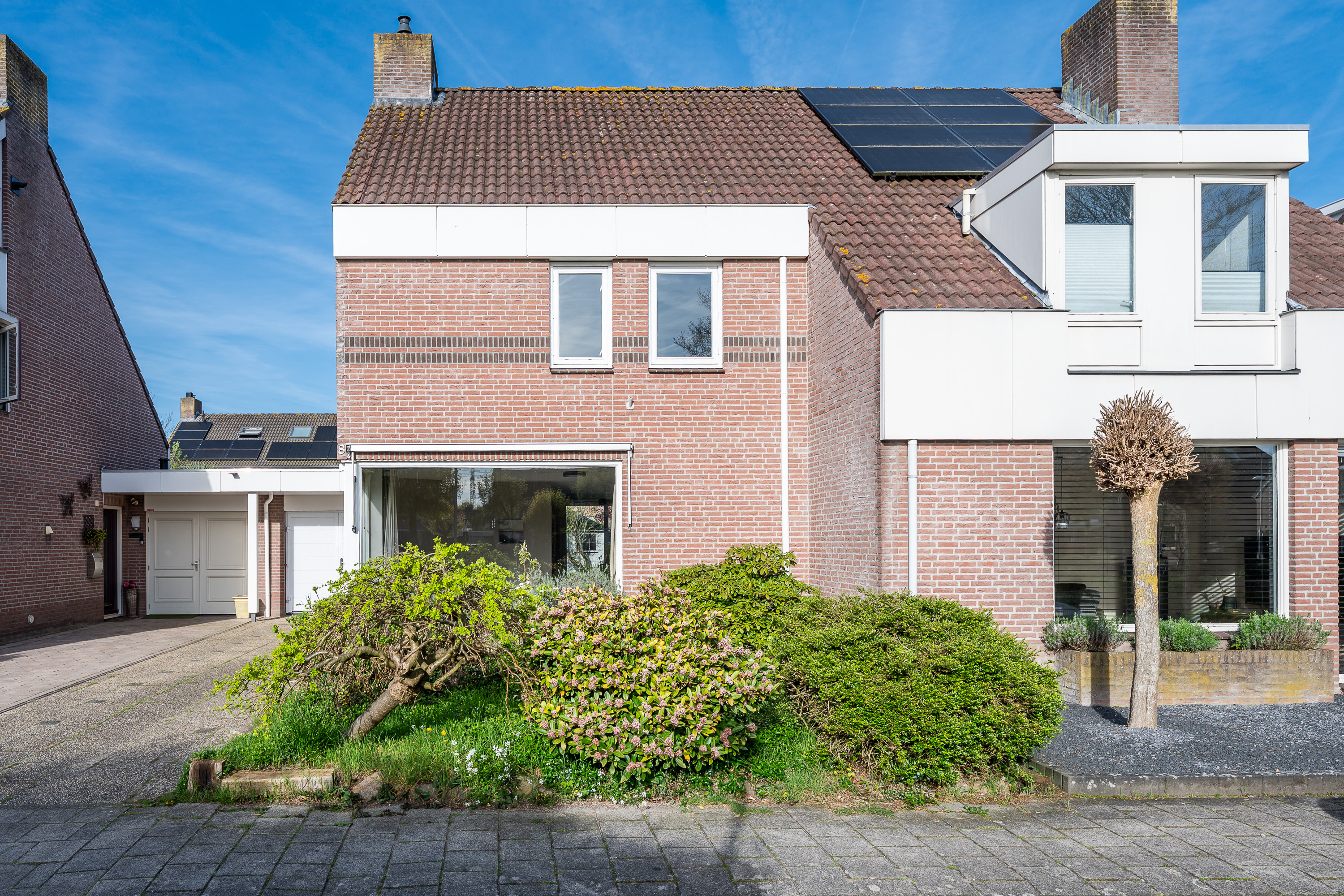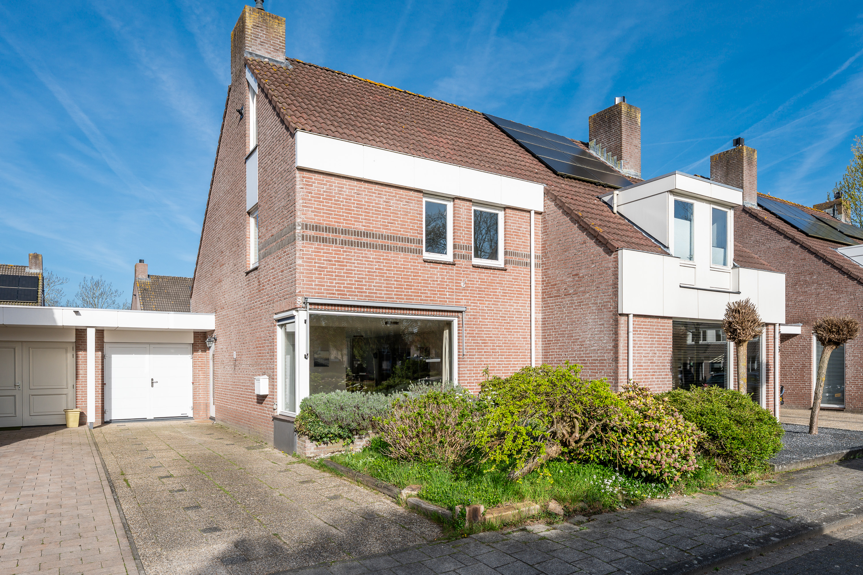De woning beschikt over een verzorgde voortuin met diverse volwassen beplanting, wat zorgt voor een groene en uitnodigende uitstraling. De eigen, ruime oprit met voldoende parkeergelegenheid biedt toegang tot de garage middels een dubbel openslaande (handmatige) deur en overdekte entree.