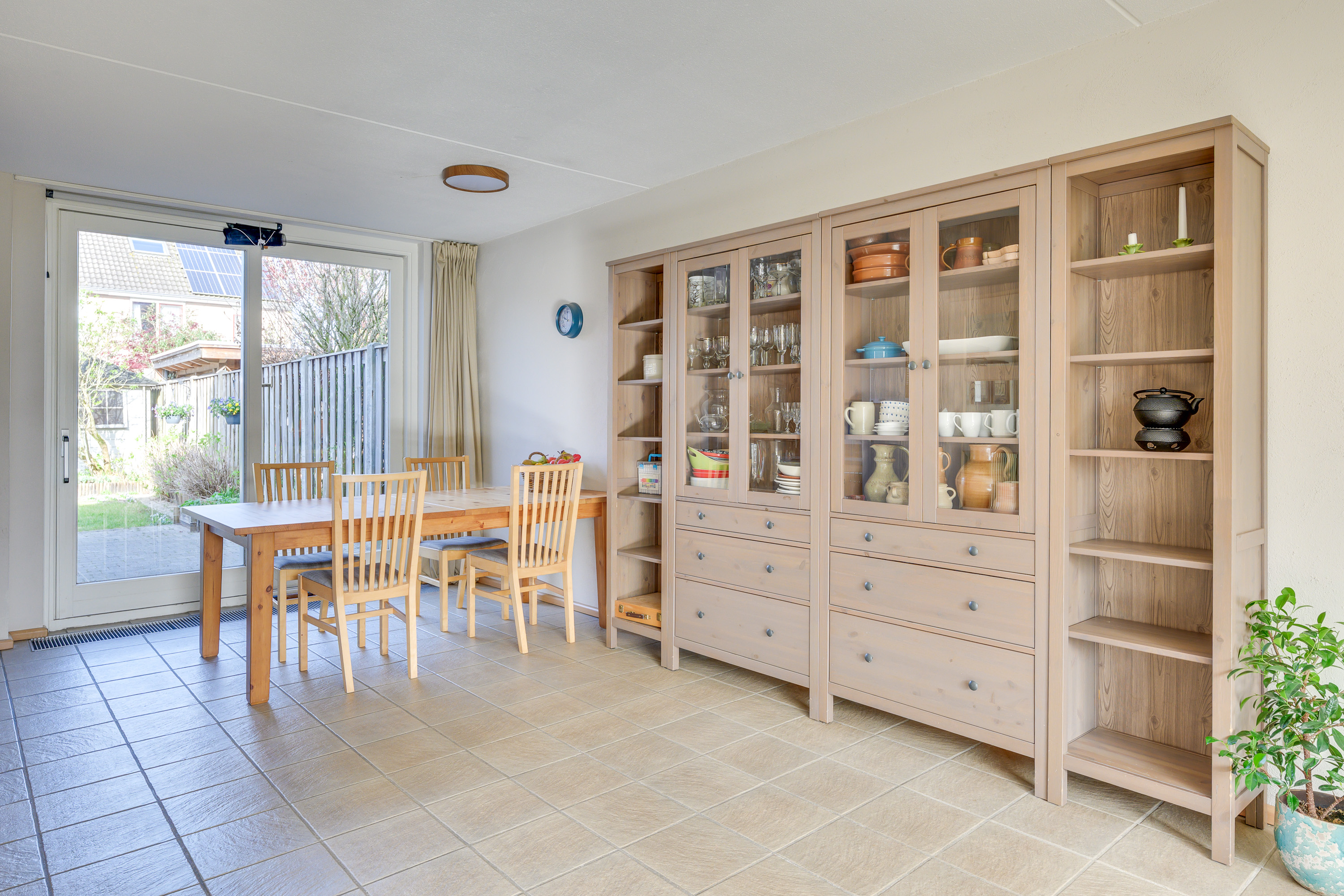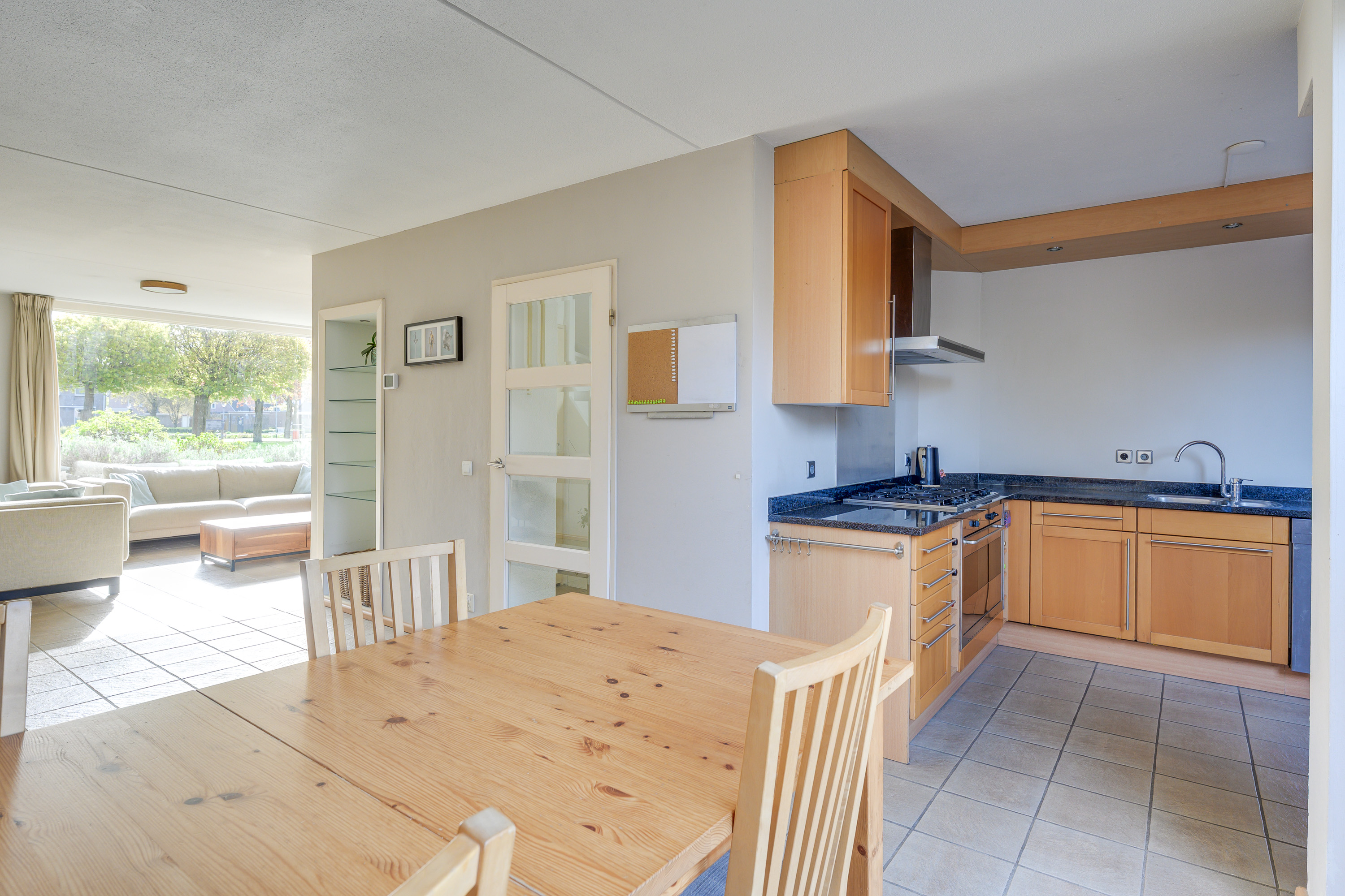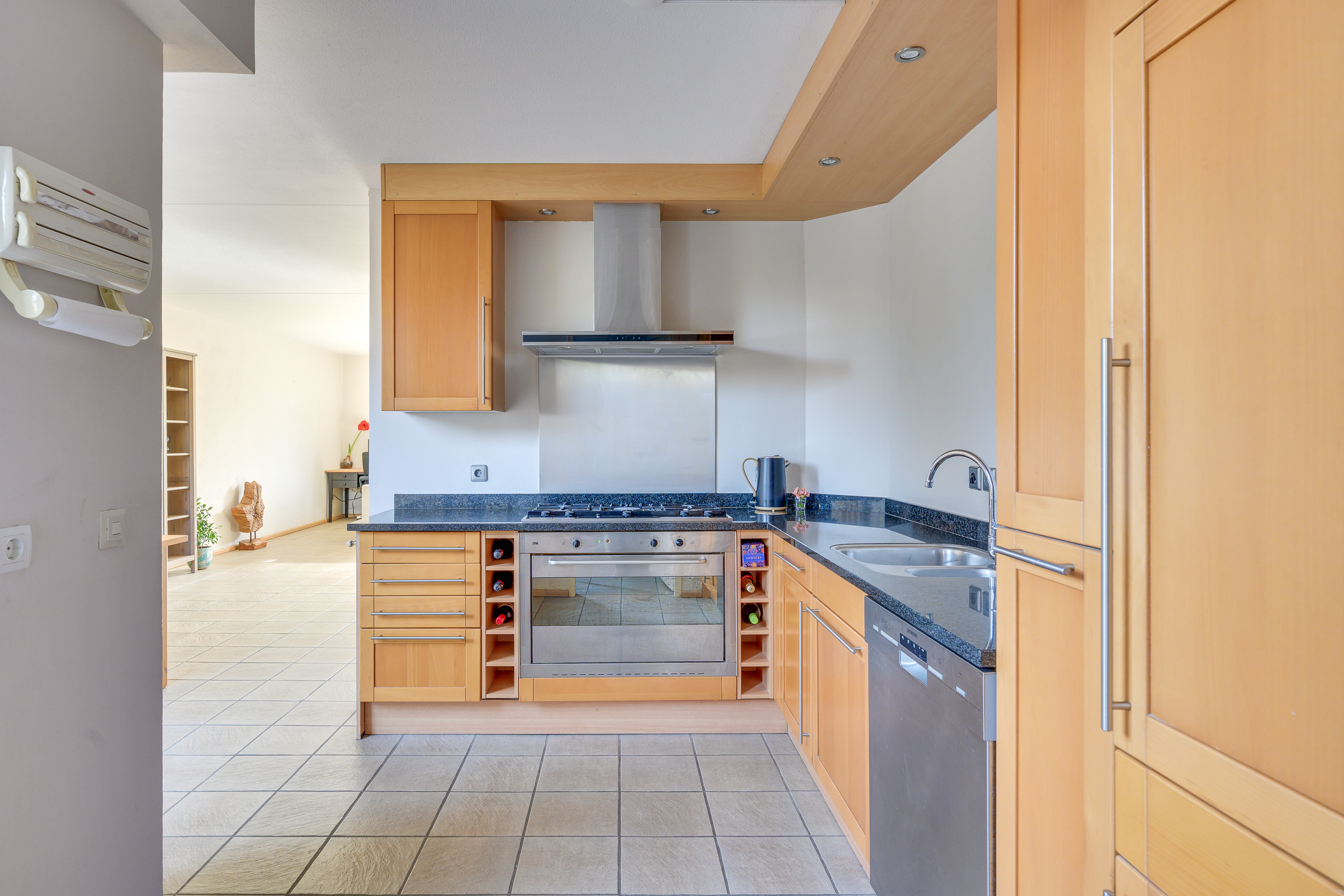 De open keuken staat in directe verbinding met het eetgedeelte. De keuken is uitgevoerd met een natuurstenen werkblad en beschikt over diverse inbouwapparatuur, waaronder een 5-pits gaskookplaat, afzuigkap, oven en een Siemens vaatwasser (2019). Tevens is er een 1,5 spoelbak aanwezig. Vanuit de keuken is er toegang tot de bijkeuken, wat zorgt voor extra bergruimte en functionaliteit.