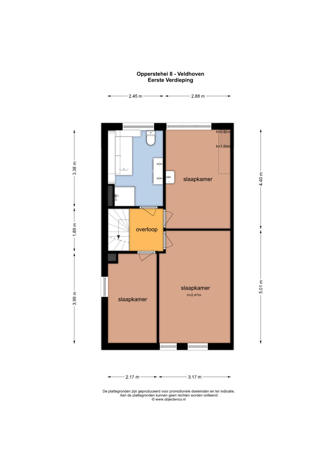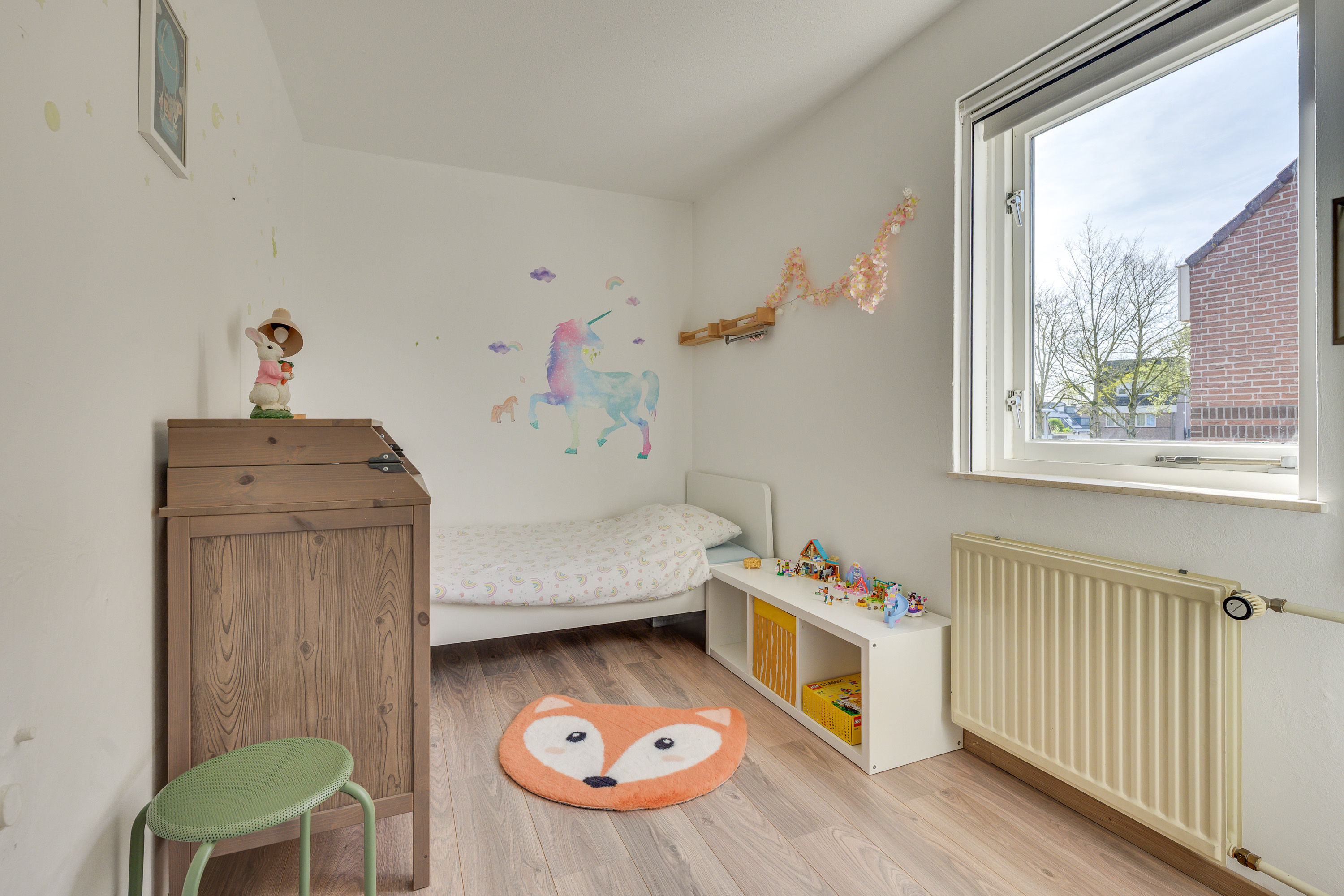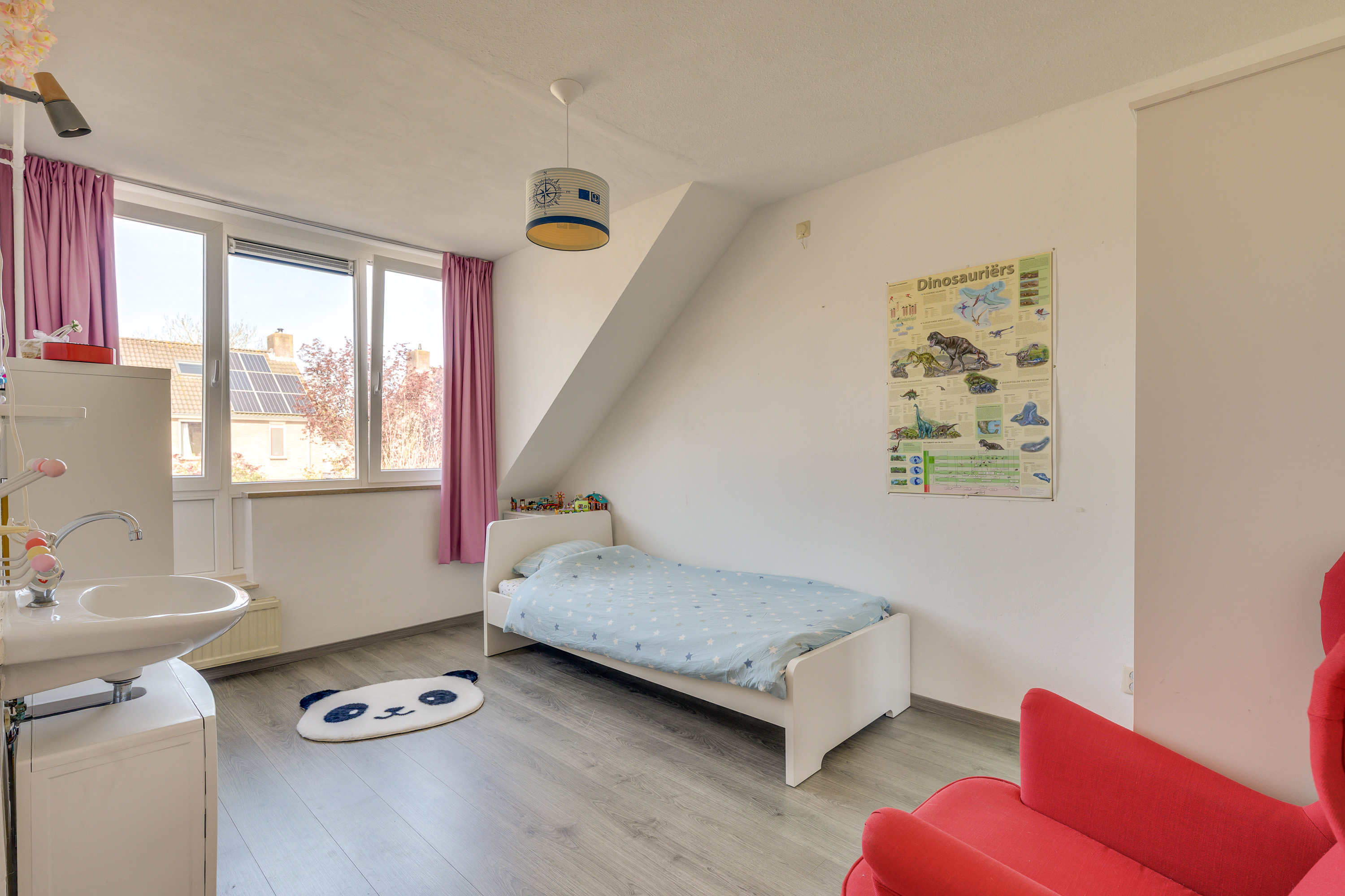 De eerste verdieping beschikt over drie slaapkamers en de badkamer. De gehele verdieping is voorzien van een nette laminaatvloer. De eerste slaapkamer aan de voorzijde is voorzien van een draairaam met hor en biedt een prettige lichtinval. De hoofdslaapkamer is ruim opgezet en beschikt over twee draairamen met horren en een vrij uitzicht over de groenstrook aan de voorzijde. De slaapkamer aan de achterzijde is voorzien van twee draai-/kiepramen met kunststof kozijnen en heeft een wastafel. Door de dakkapel (geplaatst in 2024) is er veel extra ruimte gecreëerd.