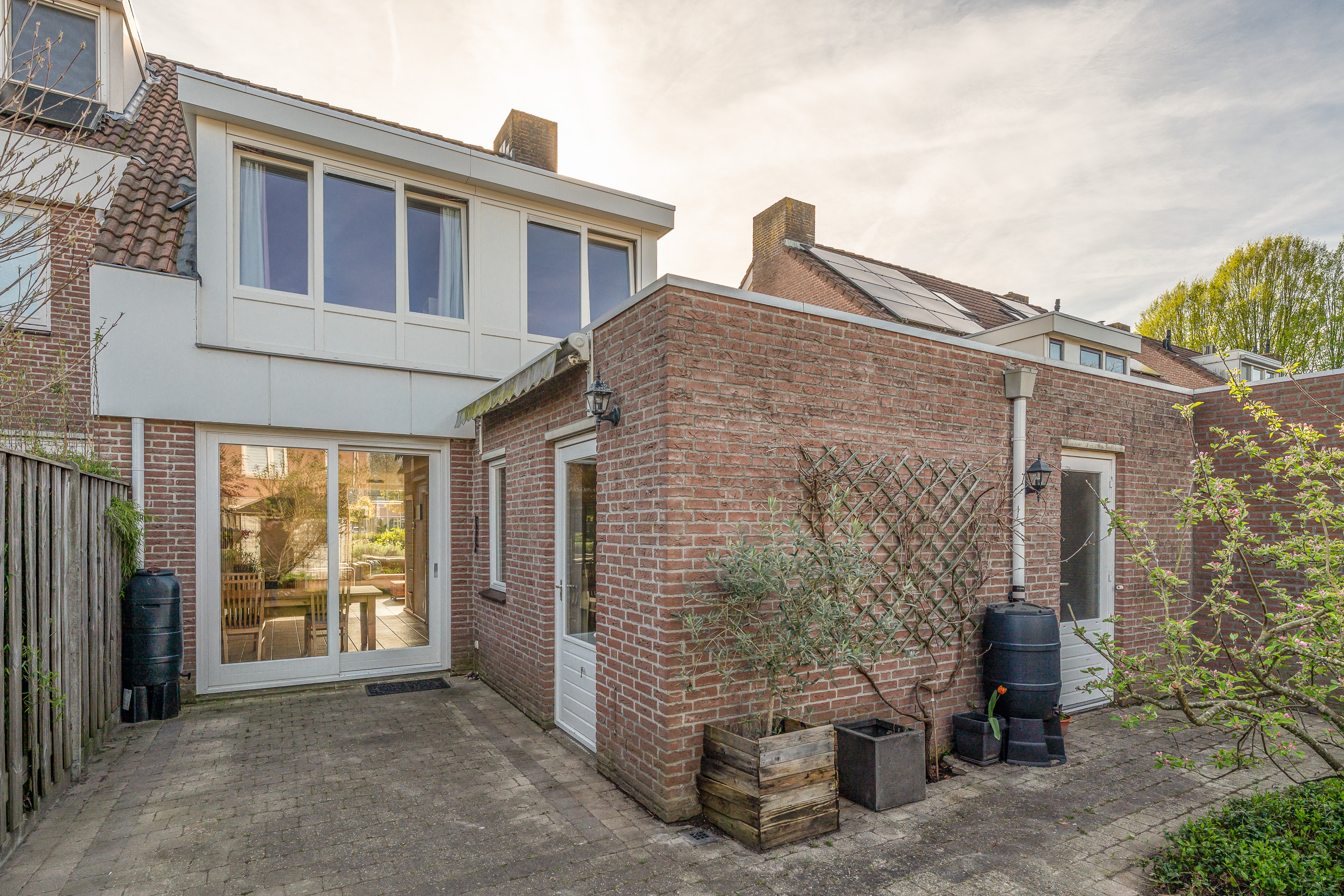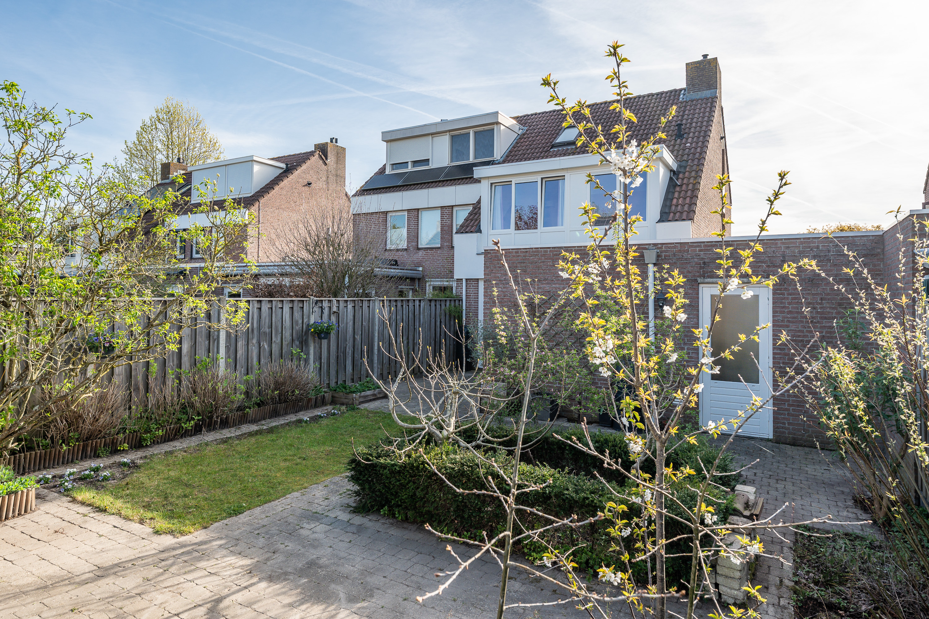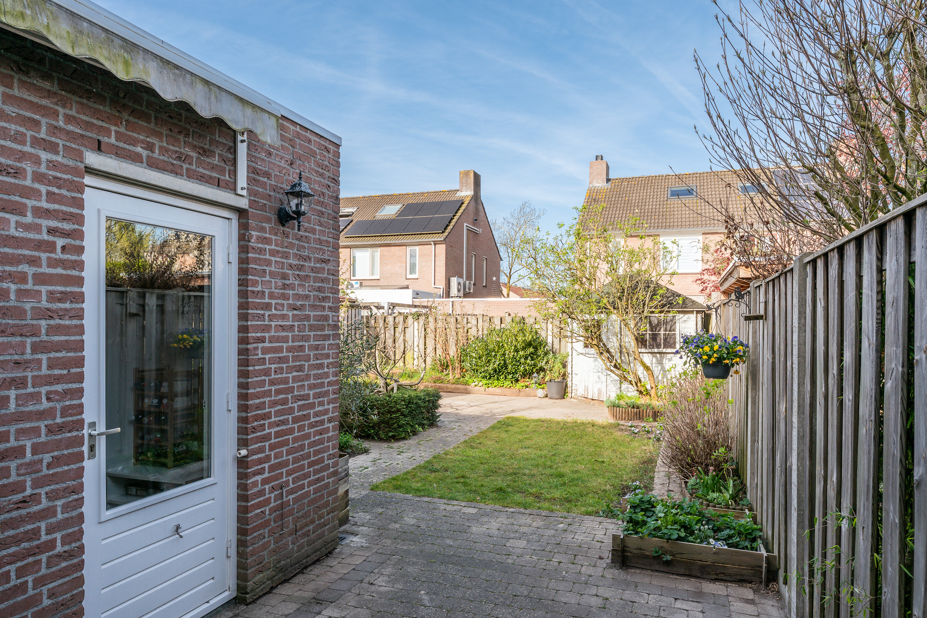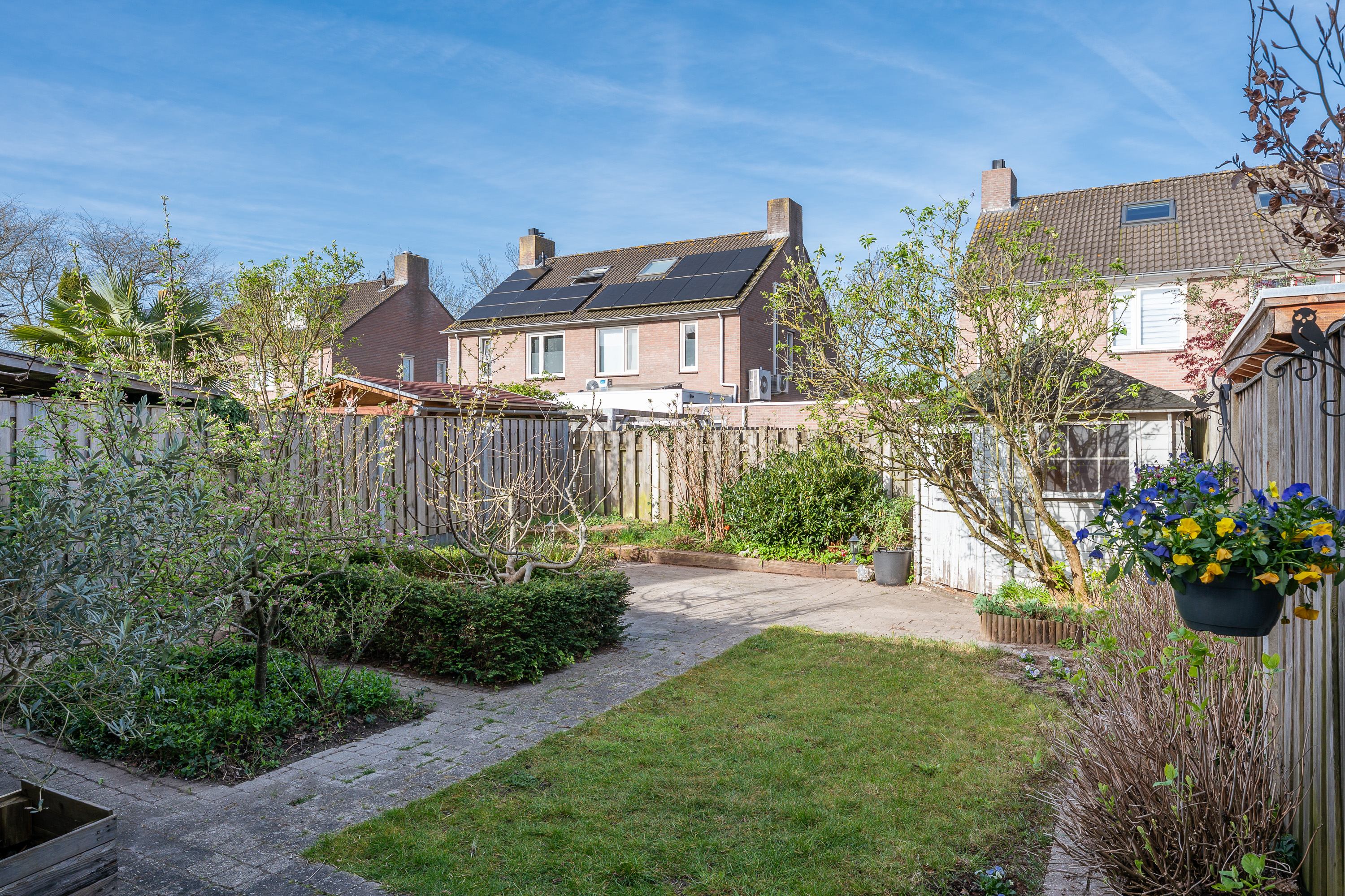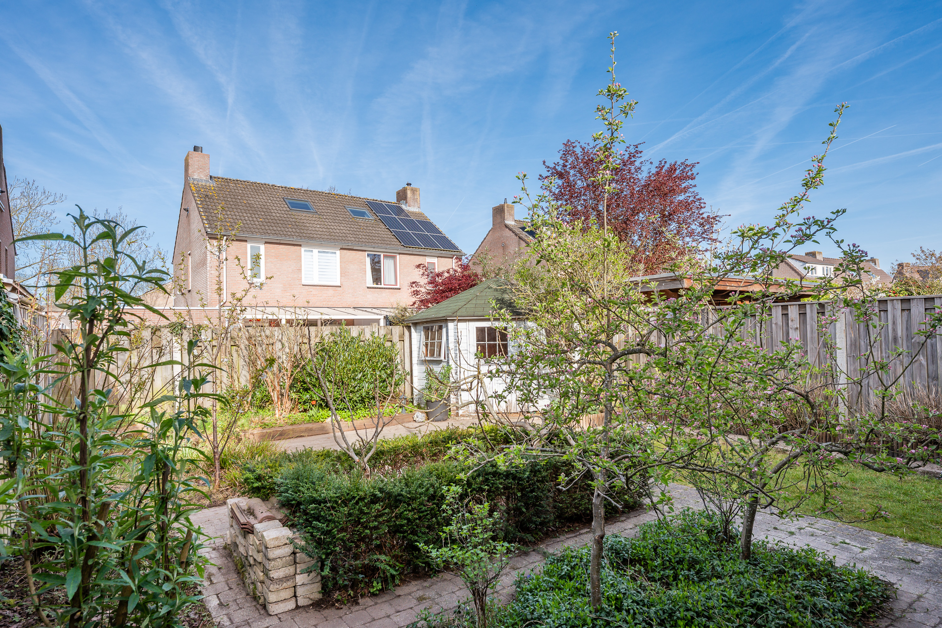 De achtertuin is fraai aangelegd en biedt een fijne combinatie van groen en bestrating, waardoor er meerdere zitplekken gecreëerd kunnen worden. De tuin beschikt over diverse volwassen beplanting en fruitdragende bomen en struiken, waaronder appelbomen (Golden Delicious en Elstar), vijgen, druiven, een olijfboom, kersen en zowel rode als witte kruisbessenstruiken. Daarnaast zijn er sierbeplantingen aanwezig zoals hortensia, een jasmijnboom en een vlinderstruik. Achterin de tuin bevindt zich een tuinhuis, voorzien van elektra, ideaal voor opslag of hobbygebruik.