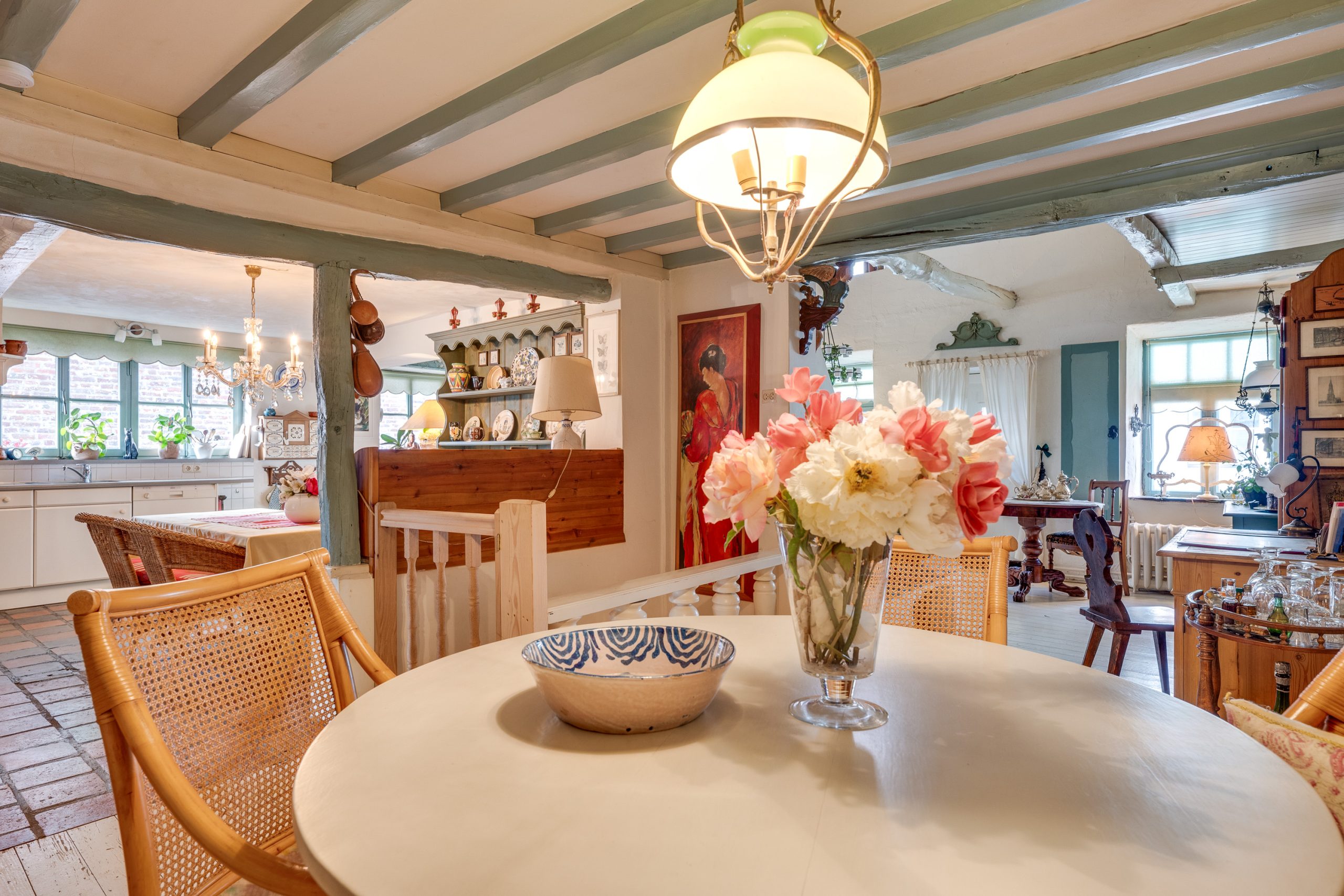 Wanneer u bij binnenkomst vanuit de hal linksaf slaat, opent zich een ruimte die de warmte van een vervlogen tijdperk ademt.