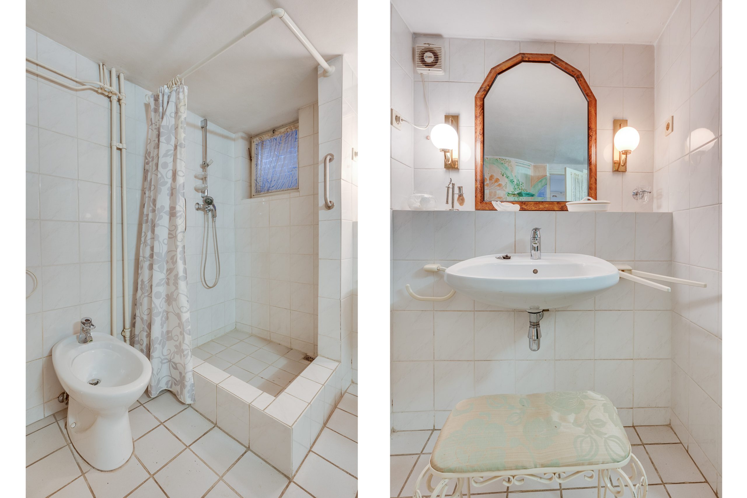 De badkamer op deze verdieping is vernieuwd in 1999 en is weelderig aangelegd. Het hoogpolige tapijt dempt elke voetstap, terwijl de marmeren badrand en het bijpassende wastafelmeubel met spiegel een verfijnde elegantie uitstralen. De dakramen zorgen voor lichtinval en verder vindt u hier het toilet.