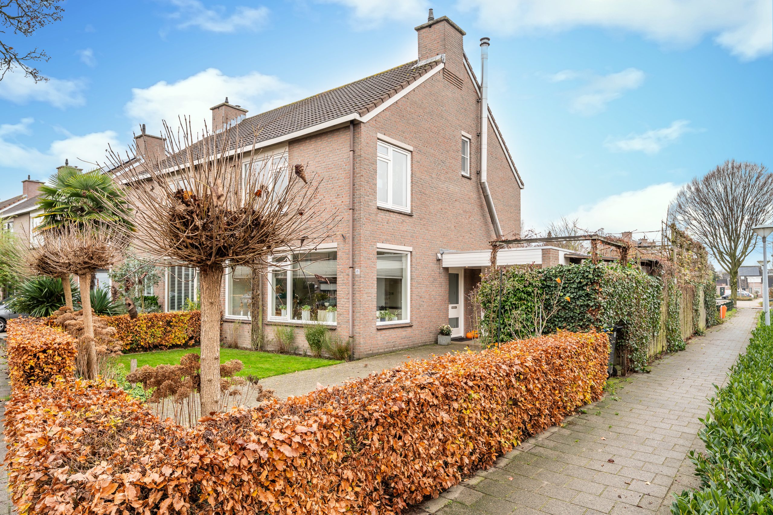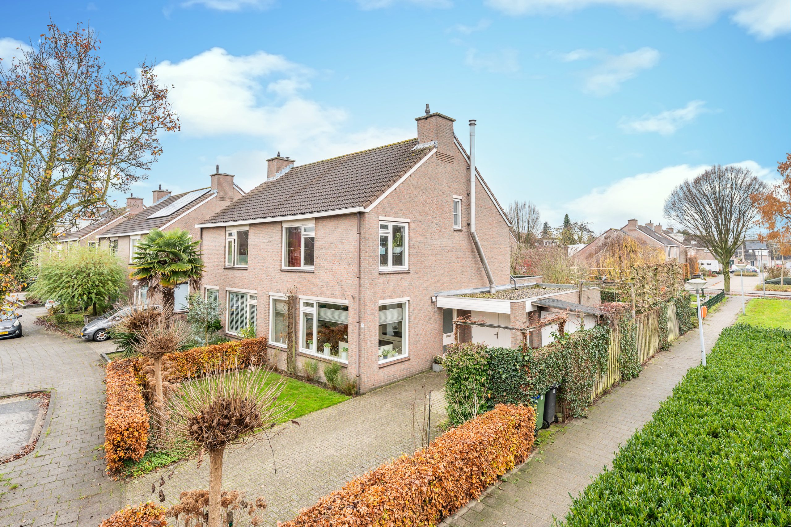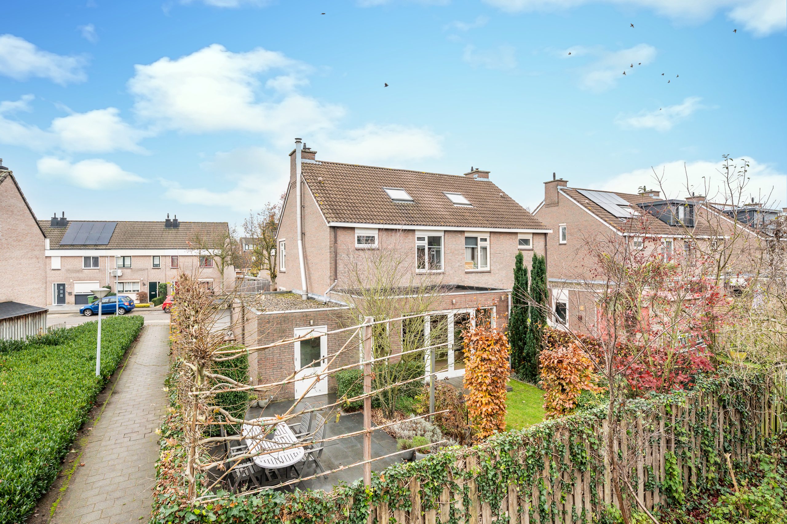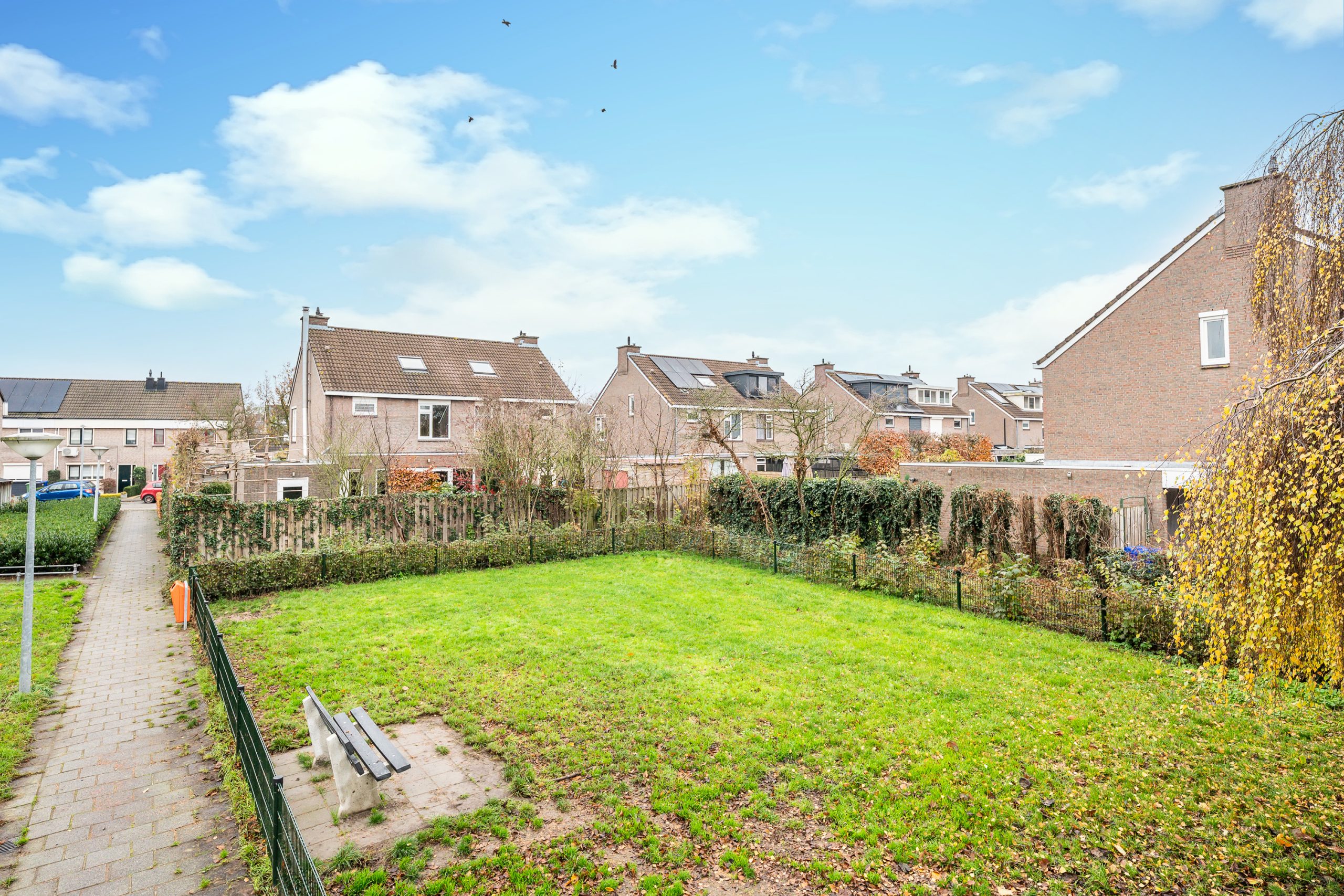 Via de achterom is de tuin ook goed bereikbaar. Aan de achterzijde en zijkant is er bovendien vrij uitzicht dankzij de gemeentelijke groenstrook, wat het gevoel van ruimte en rust extra versterkt.