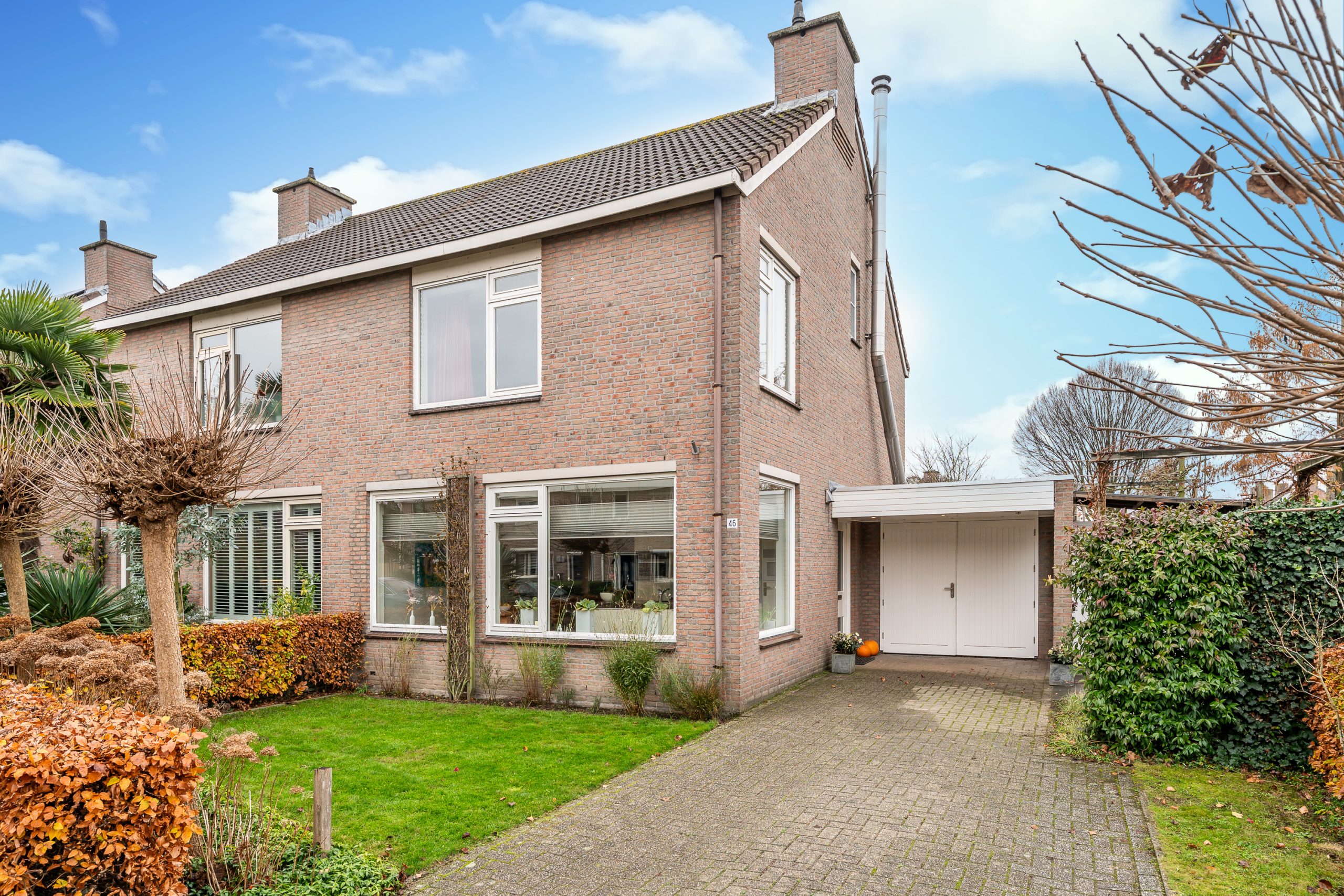 De garage is netjes afgewerkt met een tegelvloer en voorzien van elektra. Handig voor stalling, klussen of extra bergruimte. Vanuit de garage is er bovendien een deur naar de overdekte entree, waardoor je altijd droog en comfortabel binnenkomt.