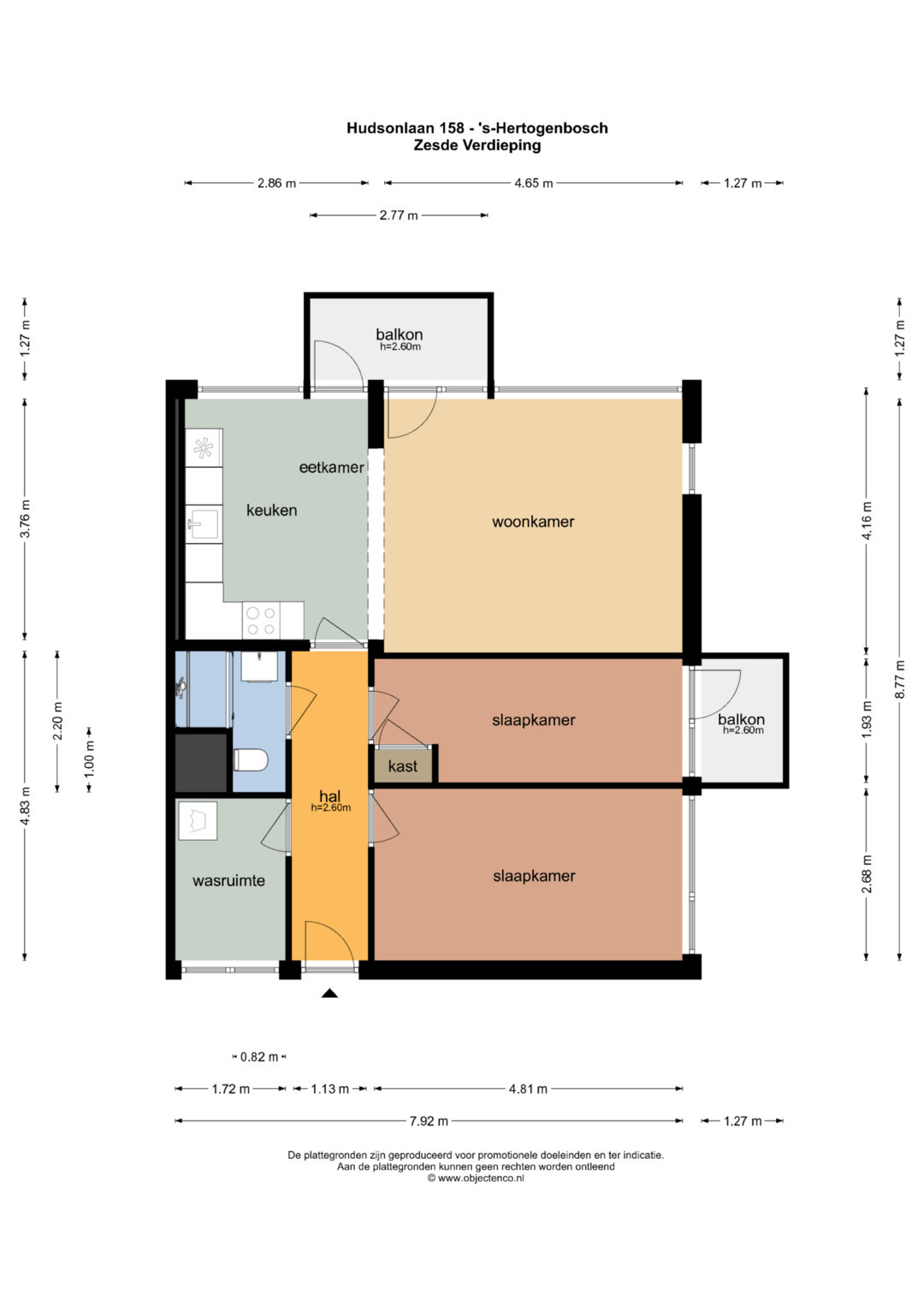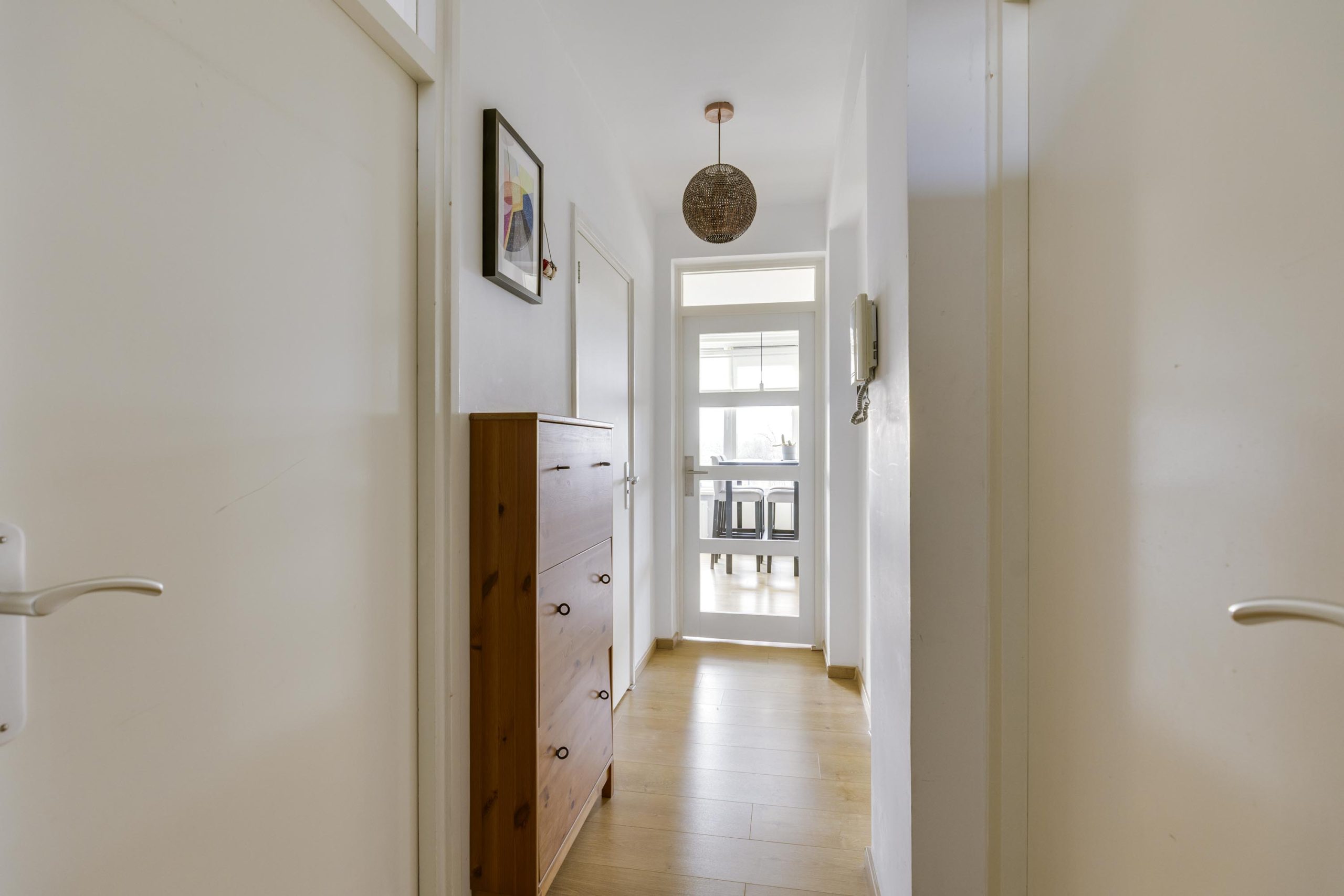 Wanneer u het appartement op de 6e verdieping betreedt, komt u terecht in de hal/gang van waaruit u toegang heeft tot alle vertrekken. Er ligt een laminaatvloer welke is doorgelegd door het gehele appartement.