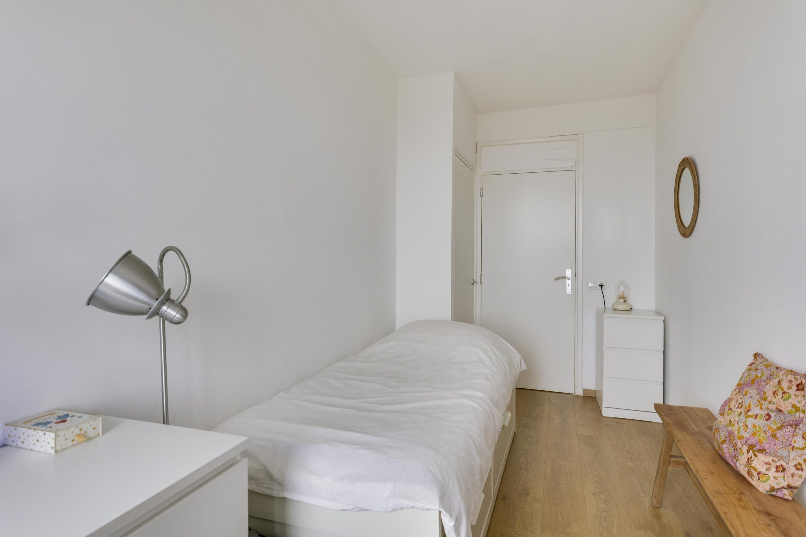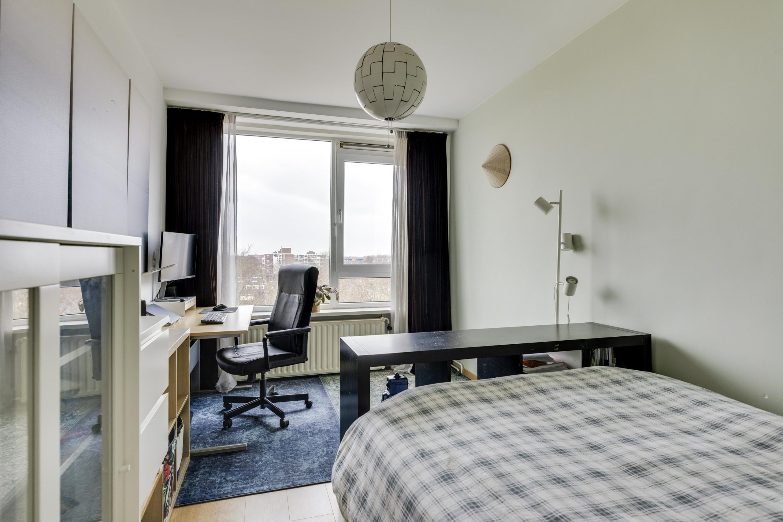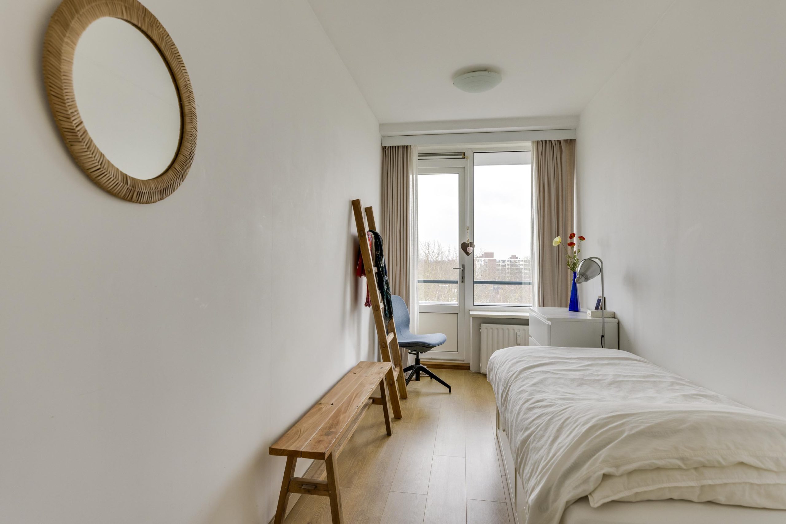 Wanneer u het appartement binnenkomt bevindt zich direct rechts de grootste slaapkamer. Daarnaast ligt de tweede slaap- of werkkamer die niet alleen extra ruimte biedt, maar ook toegang heeft tot het tweede balkon.