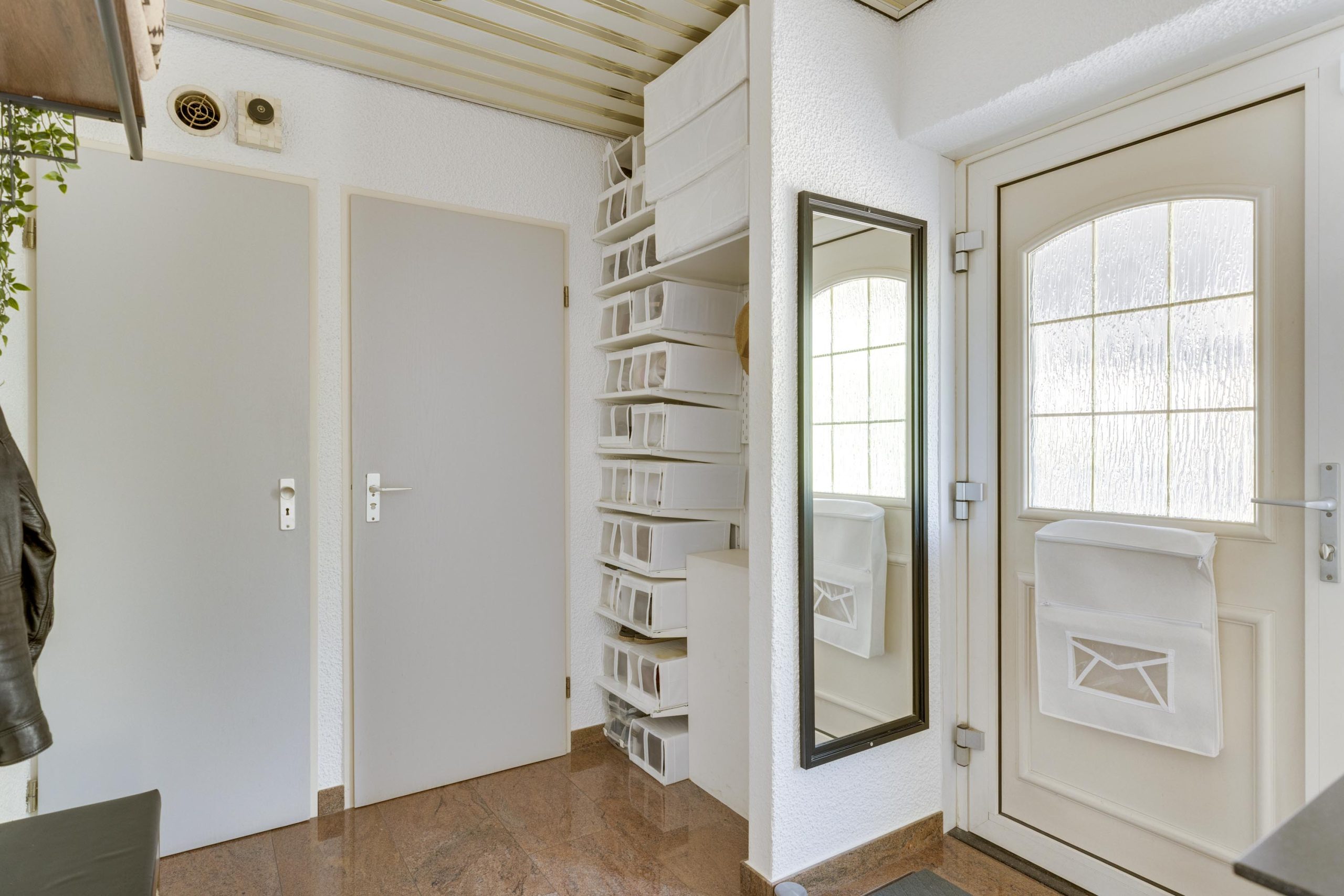 De stijlvolle entreehal is voorzien van inbouwspots, een garderobe en een moderne meterkast met slimme meters. Het toilet is strak afgewerkt met gedeeltelijke wandtegels, spiegels, een wastafel en een wandtoilet. De begane grond is voorzien van een unieke gepolijste granieten vloer met vloerverwarming.