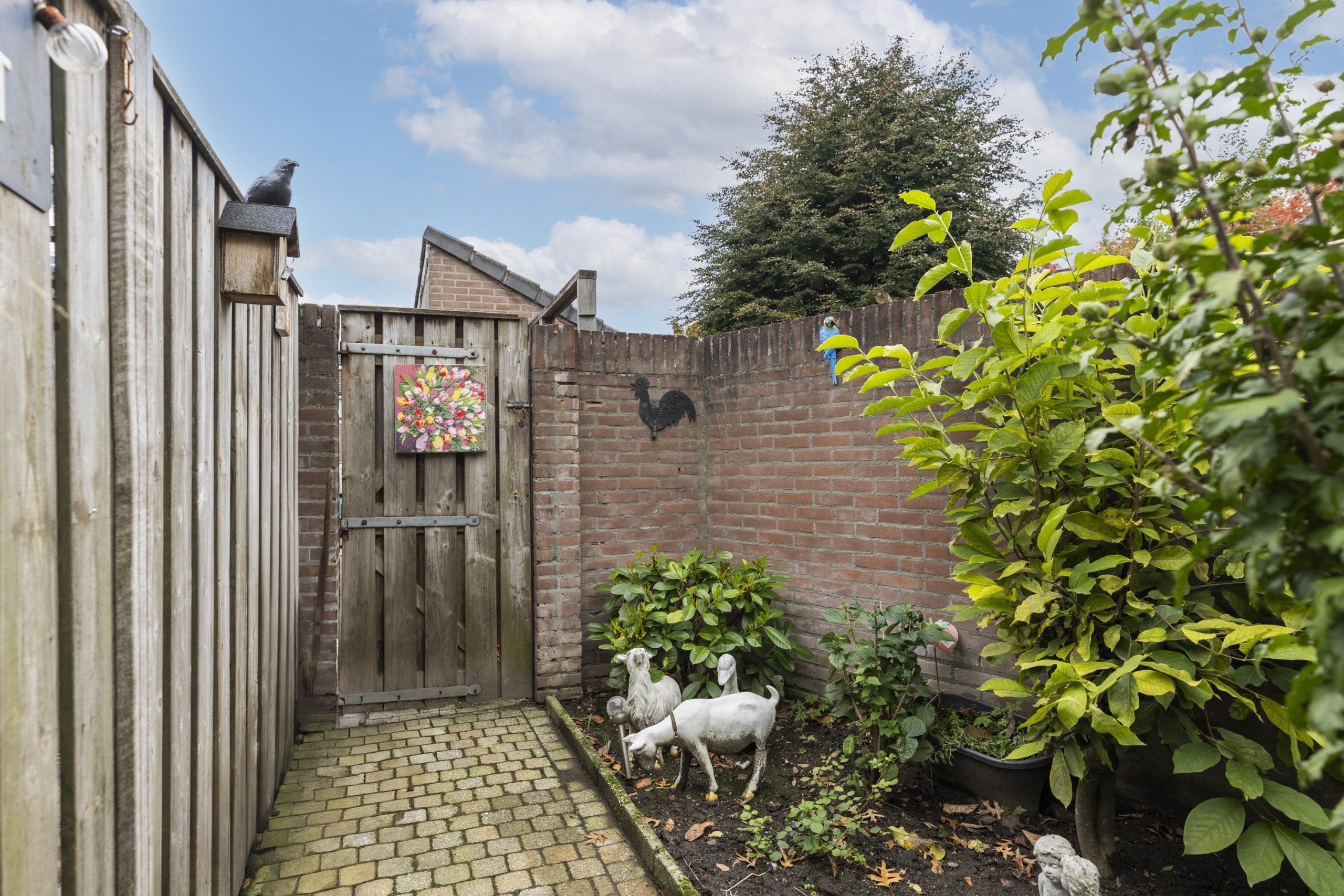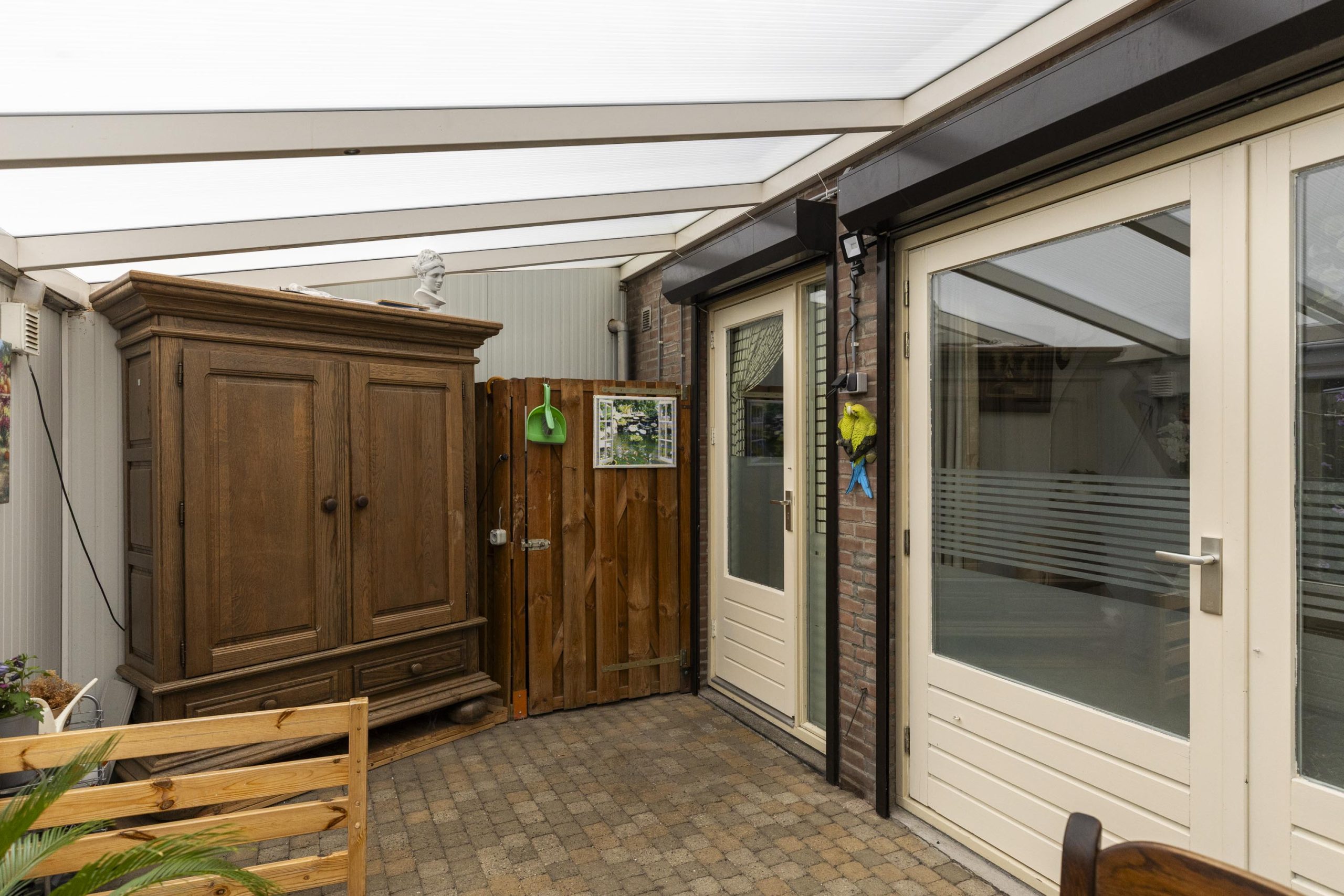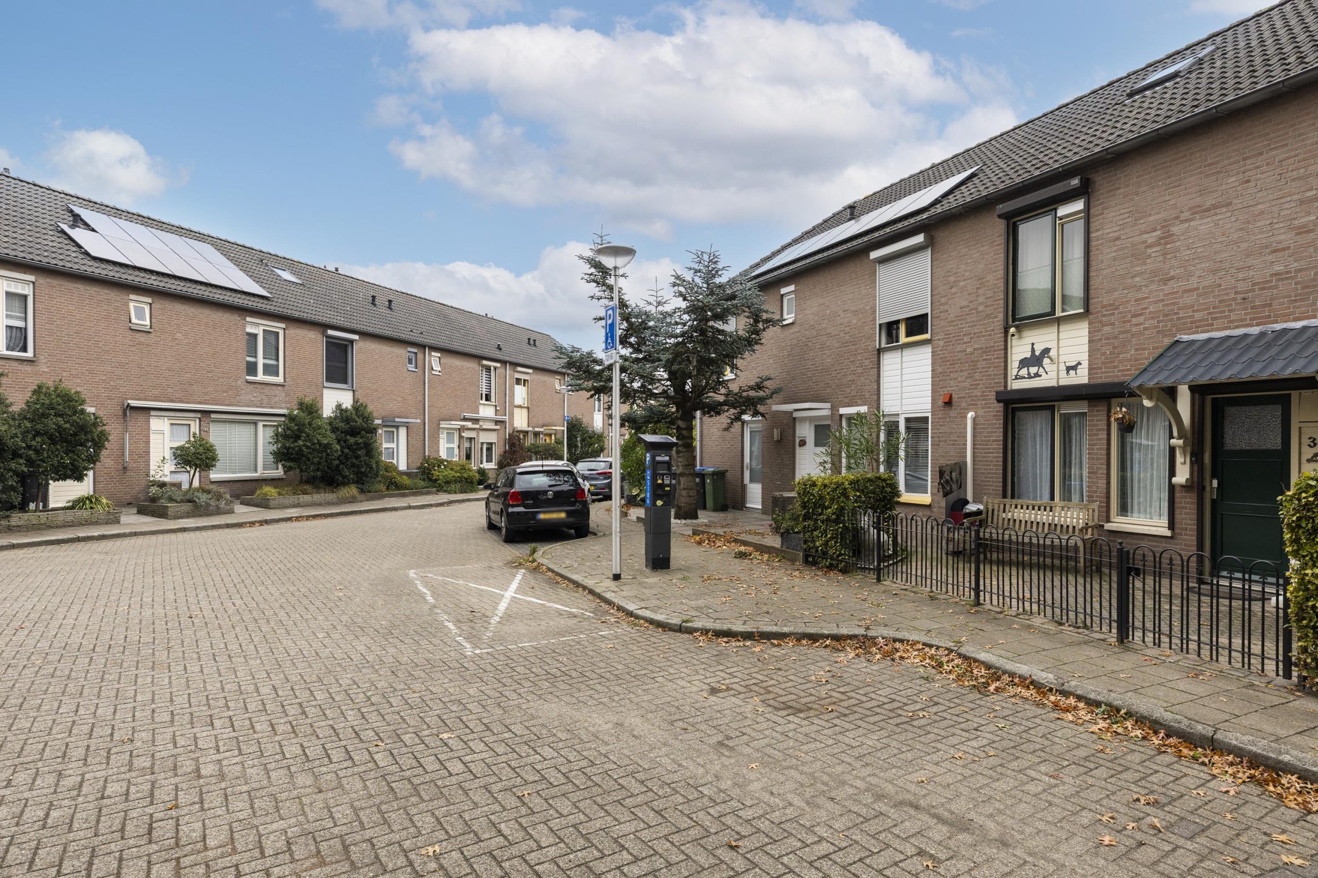 De woning beschikt over een nette, betegelde voortuin met hekwerk, ruimte voor kliko’s, buitenkraan en een overdekte voordeur. Extra praktisch: de ruime inpandige berging aan de voorzijde, voorzien van elektra.