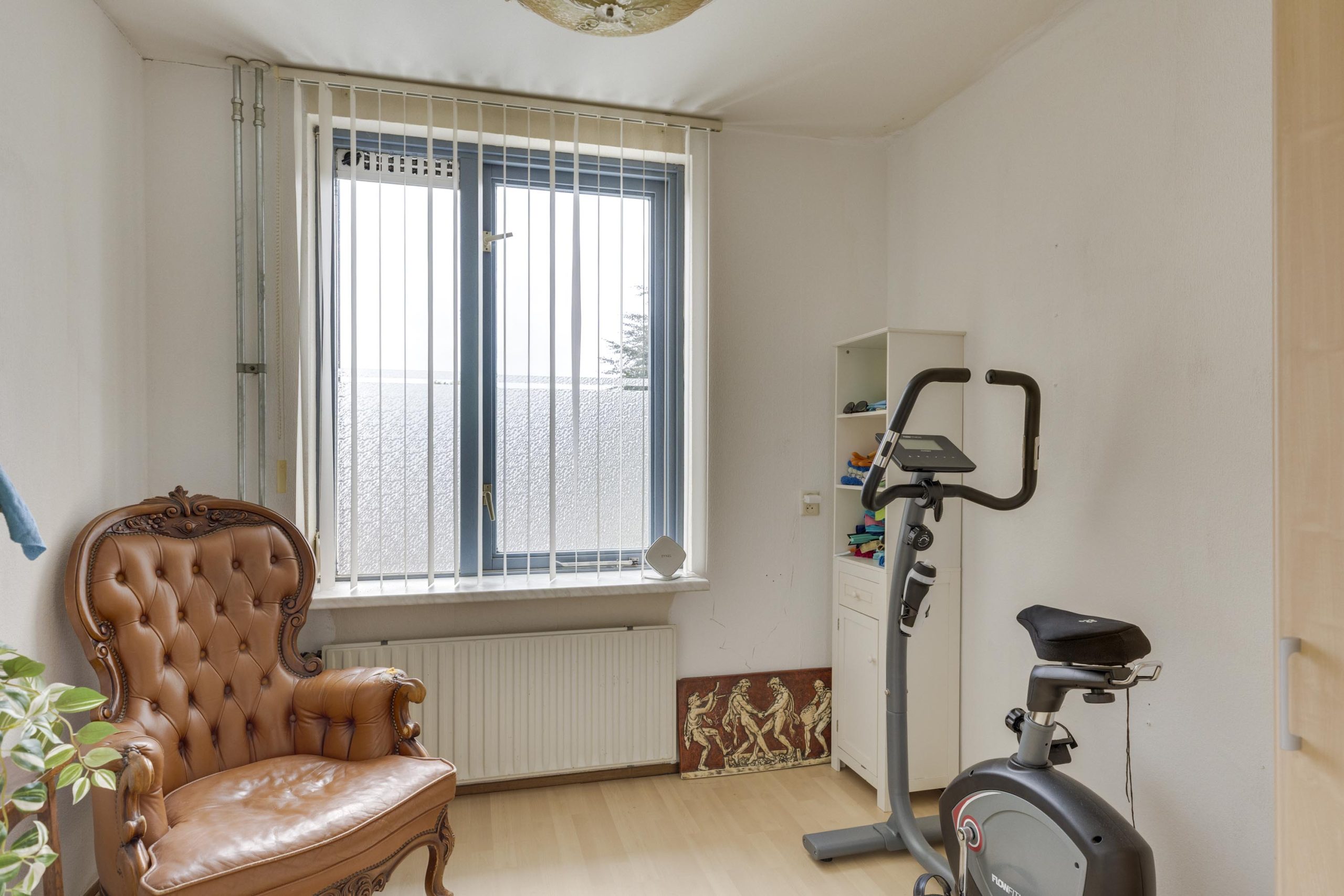 De woonkamer is aan de voorzijde gelegen en heeft een fijn vrij uitzicht, is afgewerkt met een laminaatvloer en uitgerust met airco voor extra wooncomfort. Doordat er geen draagmuren aanwezig zijn, is hier eenvoudig een open leefkeuken te realiseren.