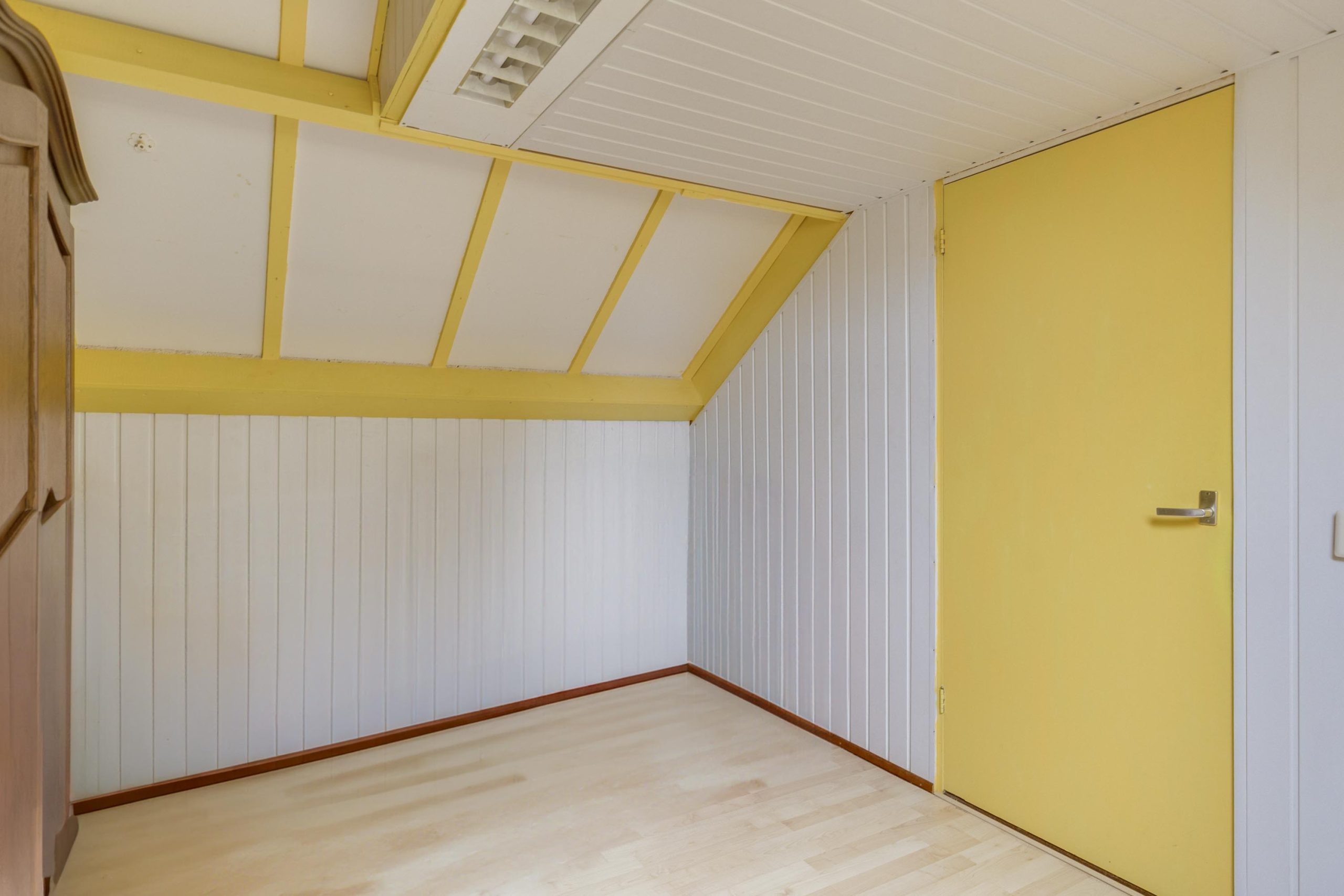 Via een vaste trap bereikt u de tweede verdieping. Op de overloop vindt u de aansluitingen voor wasmachine en droger, een dakraam, de CV-ketel en de omvormer van de zonnepanelen. Onder de dakschuinte is praktische bergruimte over de volle breedte aanwezig, met daarnaast toegang tot een royale bergzolder die met een dakraam of dakkapel kan worden omgebouwd tot een zesde slaapkamer. Verder is er een ruime vijfde slaapkamer met laminaatvloer en dakraam.